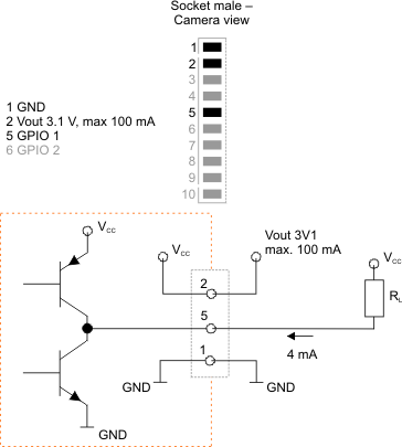 NOTICE! The general purpose I/Os of the GigE uEye LE are not potential-free and has no protective circuits. |