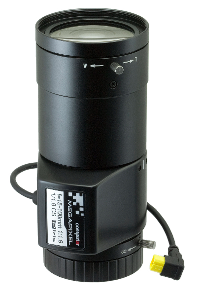 The Computar LensConnect EG7Z1519KCS-MPWIR CS-mount lens features a varifocal 15-100mm focal length, f1.9 fstop, 1/1.8" lens with a P-Iris for precise focus, and remote focus and zoom adjustments. LensConnect motorized lenses are powered with a USB cable. Remote adjustments can be made with the Plug-and-Play software. The floating focus design enables ultra-high near to far resolution. Precise focus adjustments can be made with the stepper motor to ensure consistent results. The LensConnect lens series includes fixed or varifocal lenses.