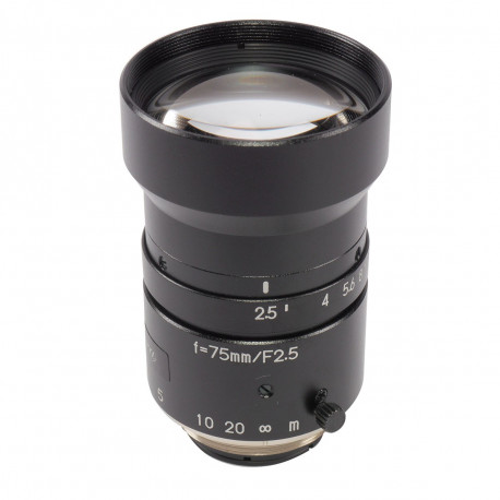The Kowa LM75JC1MS is a 75mm 2 megapixel lens with a M34x0.5 filter size, -0.1% distortion, and Center 100lp/mm / Corner 80lp/mm resolution.