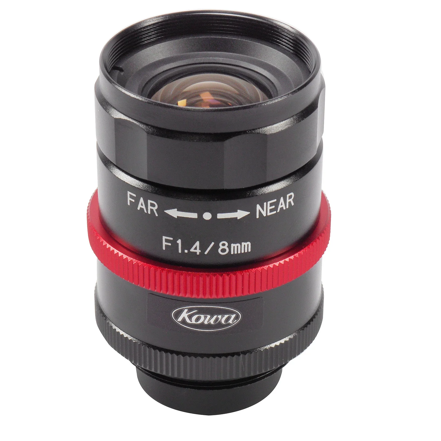 The Kowa JCM-V LM8JCM-V industrial lens is a 2 megapixel 8mm C-mount 2/3" lens with 1.4 f-stop, 0.1 meter minimum object distance, and -0.6% distortion.